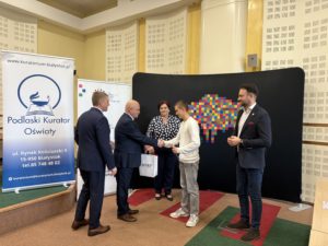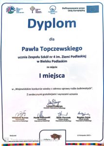 W konkursie wzięli udział również inni uczniowie naszej szkoły: Jan Żarki, Piotr Żarski oraz Bartosz Juchimuk, którzy z dużym zaangażowaniem reprezentowali szkołę i zdobyli cenne doświadczenie. Uczniów do konkursu przygotowywała p. Paulina Kondraciuk.