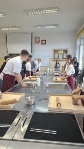 Z ogromną radością gościliśmy uczniów Szkoły Podstawowej nr 5 im. Szarych Szeregów w Bielsku Podlaskim wraz z wychowawczynią w murach naszej szkoły. Dziękujemy za Waszą obecność, uśmiech, zaangażowanie oraz fantastyczną atmosferę, którą stworzyliście podczas wspólnego spotkania. Podczas wizyty uczniowie uczestniczyli w warsztatach gastronomicznych pieczenia pierników, podczas których zapoznali się z technologią gastronomiczną oraz historią i tradycją wypieku pierników. Nie zabrakło również wirtualnej strzelnicy, krótkich zajęć informatycznych oraz pokazu hotelarskiego. Szczególne podziękowania kierujemy do Pani Beaty Żoch za współpracę oraz do uczniów klasy 7A – byliście wspaniałymi gośćmi.